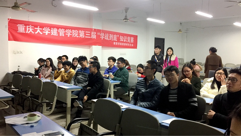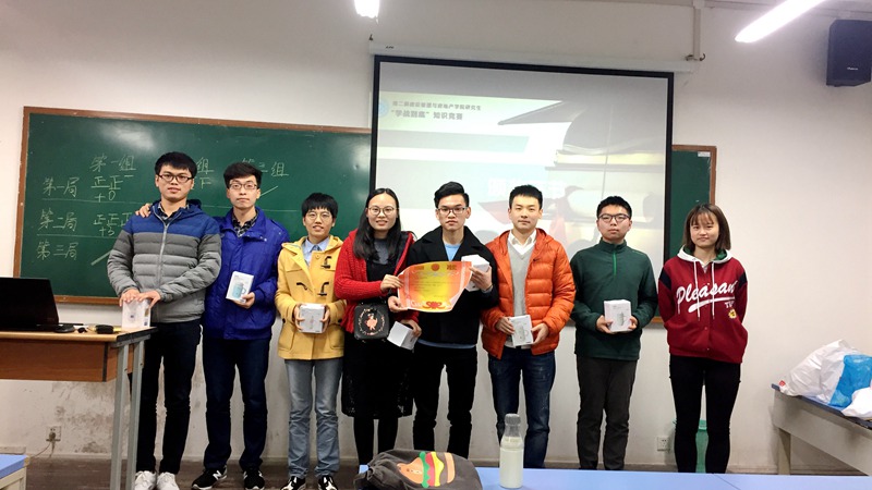 为进一步在研究生中营造浓厚的知识学习氛围,促进良好学风建设,2017年11月20日下午2点半,分别于建管学院楼研一、研三、201教室成功举行了建管学院第三届研究生“学战到底”知识竞赛。本次知识竞赛由365bet备用网址一主办、建管学院团委研究生会承办,共有49名研究生参加比赛。经过激烈角逐,最终专硕2班、专硕1班、学硕1班分别获得冠、亚、季军,选出由李圆圆、李雯茹、刘玉成、吴露芳、张恒瑜、李浩宇、李潇、颜星星8名同学组成的队伍代表学院参加校研团委举办的“学战到底”知识竞赛。