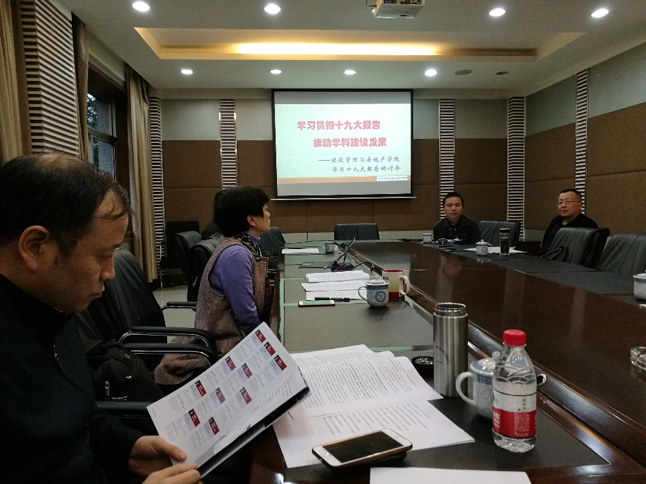 刘贵文、严薇、杨宇、叶堃晖、任宏、张仕廉、张巍、马智利、向鹏成、王林、周滔等教授参加本此会议,针对习总书记十九大报告进行深入的学习。以研读十九大报告为纲,学术委员们围绕学院未来学科发展方向和趋势展开热烈讨论。