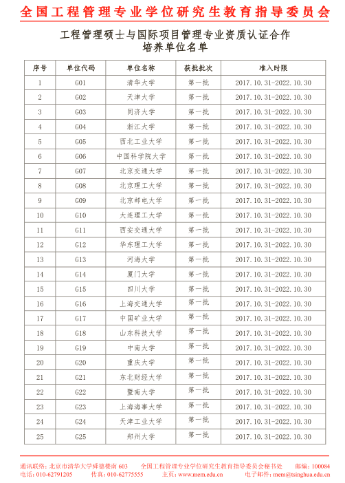 工程管理硕士教育与国际项目专业资质认证合作的主要目的,是培养具有承担项目管理全过程工作的复合型、应用型高级项目管理人才。重庆大学工程管理硕士(MEM)将根据合作实施细则在合作有效期(五年)内开展认证工作,不断提高我校工程管理硕士(MEM)的培养质量。