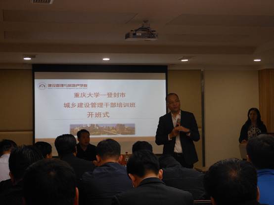 刘贵文代表学院对来自登封市大冶镇的全体学员表示欢迎,并向大家着重介绍建管学院的历史沿革、发展现状和发展目标。最后,他祝愿每一位来到重庆大学建管学院培训的学员都能够学有收获,学有所思,不虚此行,并预祝此次培训班圆满成功。