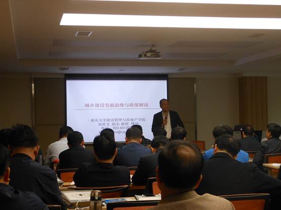 开班仪式结束后,刘贵文教授的“城乡建设发展趋势与政策解读”课程正式开始,本次培训另外还开设 “美丽乡村的规划与建设”、“特色小城镇的建设与发展”“城乡建设的案例解读”等课程,培训师资为重庆大学授课效果好的知名专家学者,同时还安排有考察仙桃数据谷、互联网产业园等现场教学环节。
